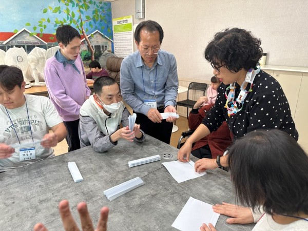 이용자분들은 의류를 가지런히 접으며 정리정돈 습관을 익혔습니다.