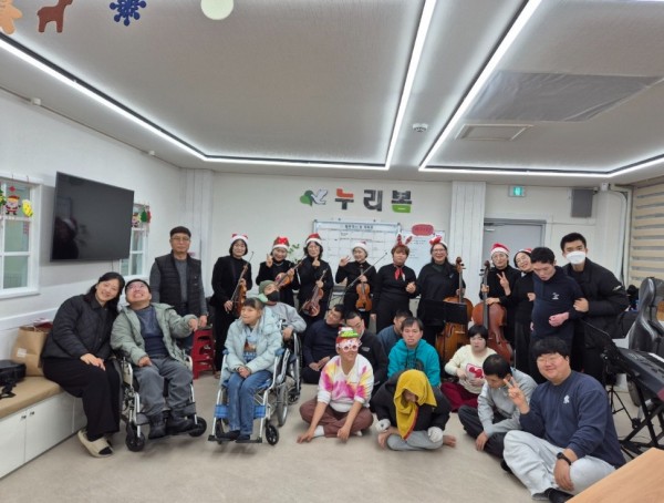 오늘 오전에는 크리스마스를 맞이하여 아름드리 챔버 오케스트라의 찾아가는 음악회가 있었습니다 다양한 연주과 임이지님의 바이올린 솔로 연주까지 아주 멋진 오케스트라 연주회였습니다 누리봄을 찾아와주셔서 감사합니다 ^^ 점심으로는 맛있는 햄버거를 먹고 오후에는 요리수업이 있었습니다 ^^ 생크림을 직접 만들어 빵과 생크림를 차곡차곡 쌓아 딸기 토핑을 올려 멋진 컵케이크를 완성하였어요 ^^ 마지막으로 크리스마스 선물을 나누며 즐거운 시간을 가졌습니다 ^^