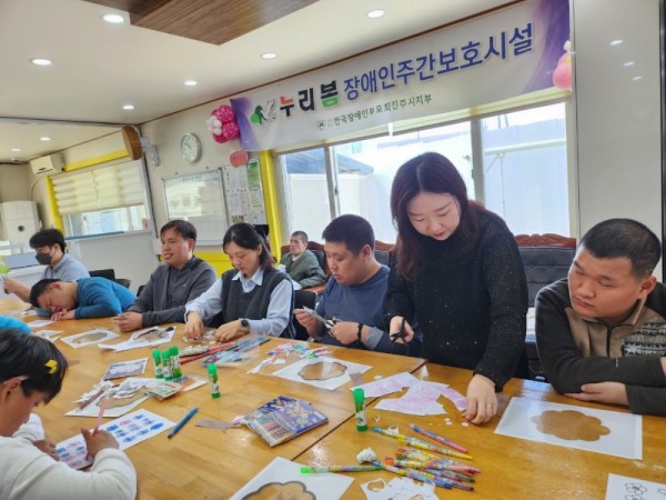 25/04/15/화요일 - 누리봄 활동 작성자 정보 전양숙팀장 작성 작성일 2025.04.15 17:06 컨텐츠 정보 388 조회 목록 답글 본문 오전에는 미술특강 수업을 진행하였습니다. 벚꽃잎을 예쁘게 색칠하여 꾸며서 손코팅 필름을 이용하여 멋진 벚꽃나무를 완성하였어요 오후에는 그림도안을 이용한 비즈놀이와 교구를 활용한 수업을 진행하였어요^^ 관련자료 이전 25/04/16/수요일 - 누리봄 활동 작성일 2025.04.16 17:47 다음 25/04/14/월요일 - 누리봄 활동 작성일 2025.04.14 17:28 댓글 0 등록된 댓글이 없습니다. Select File Upload File 목록 답글